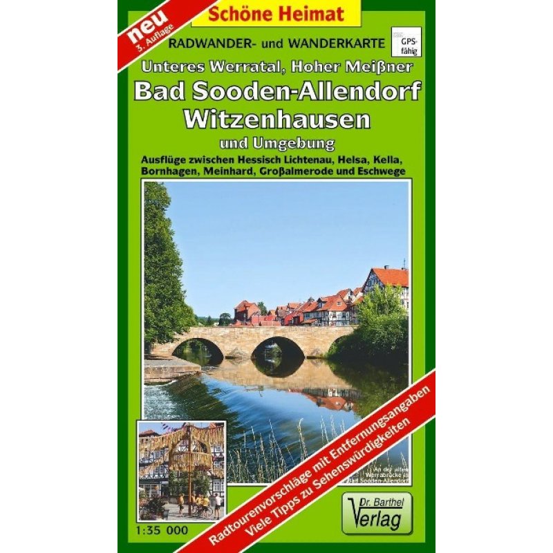 Frei von Werbeanzeigen, mit ausgewählten Straßennamen zur besseren Orientierung, farbig hervorgehobenen Ausflugszielen, Sehenswürdigkeiten der Umgebung in Text und Bild und alle regionalen und überregionalen Wander- und Radwanderwege sowie ausgewiesene Radtourenvorschläge mit Entfernungsangabe in Kilometern, GPS-fähig. Mit wetterfester Klarsicht-Schutzhülle.