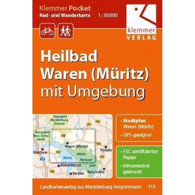 Klemmer Pocket Rad- und Wanderkarte Heilbad Waren (Müritz) mit Umgebung 1 : 50 000