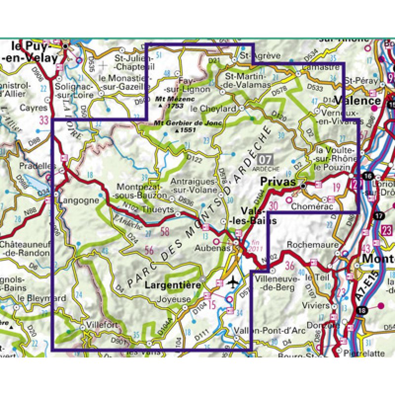 Für ausgewählte Gebiete (z.B. Zentralmassiv, Alpen, Pyrenäen) mit besonderer touristischer Bedeutung gibt IGN diese Serie von Wanderkarten heraus.