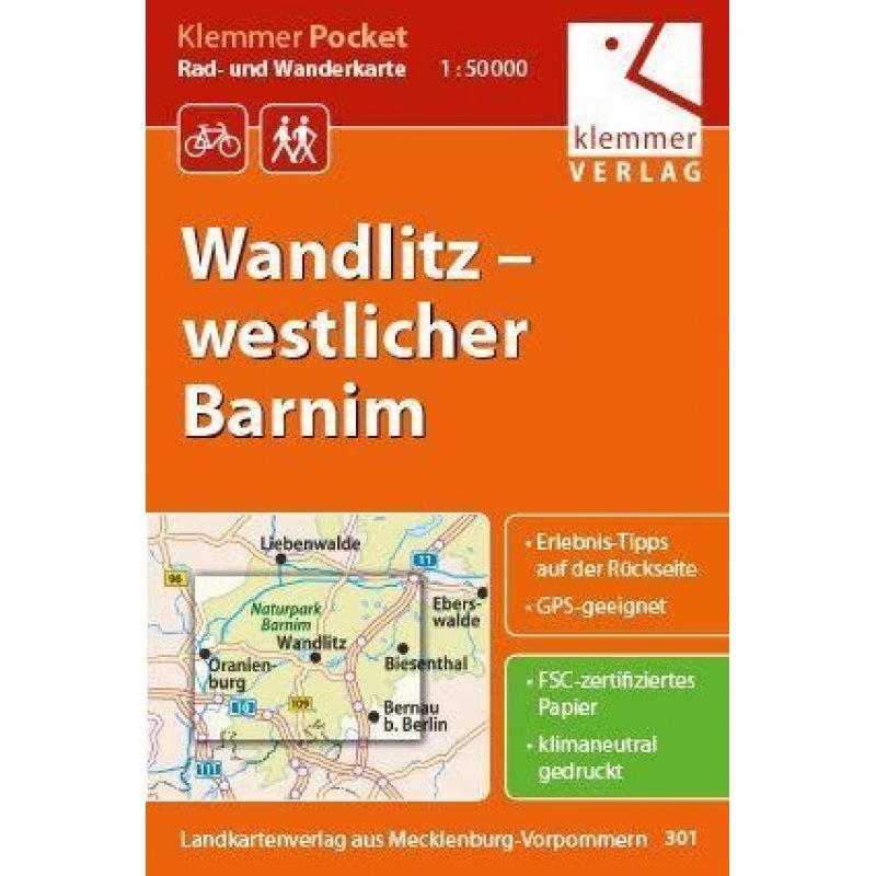 Klemmer Pocket Rad- und Wanderkarte Wandlitz - westlicher Barnim 1 : 50 000