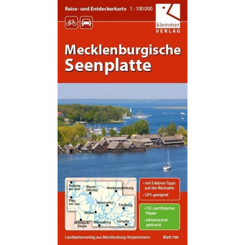 Die Mecklenburgische Seenplatte ist ein beliebtes Reiseziel. Mit ihren unzähligen Seen und Kanälen, ausgedehnten Wäldern und malerischen Städten bietet sie für jede Urlaubsform etwas. Unsere Karte im Maßstab 1:100.000 eignet sich als Radkarte und Autokarte für Erkundungen der Seenplatte. Die ausgewiesenen Radwege haben Kilometerangaben. Informationen auf der Rückseite helfen bei der Auswahl von Reisezielen oder auch kulturellen Ereignissen in der Mecklenburgischen Seenplatte. Der Kartenausschnitt reicht von Krakow am See im Nordwesten über Plau am See, Waren (Müritz), Neustrelitz, Feldberg bis hinunter nach Rheinsberg und Templin im Südwesten.Die Karte ist GPS-geeignet.