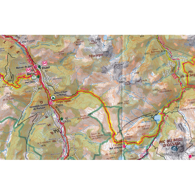 Eine Karte im Maßstab 1: 100 000 (1cm = 1km), die Sie unbedingt benötigen, um den mythischen GR 10® durch die Pyrenäen zu wandern.
