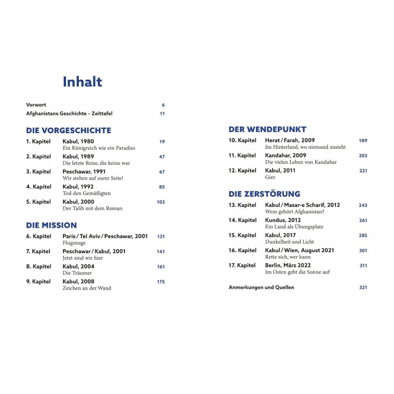 Die vielfach ausgezeichnete Auslandsreporterin Antonia Rados bereist seit über 40 Jahren Afghanistan. Sie war mittendrin: von der Zeit der sowjetischen Besatzung über den Bürgerkrieg zwischen Milizen und der ersten Herrschaft der Taliban bis zum "Krieg gegen den Terror" und dem westlichen Einsatz ab 2001. Auf dutzenden Reisen erkundete sie Hintergründe und Vorgänge, die im Westen oft verborgen bleiben, sprach mit Kriegsherren, Stammesführern und Präsidenten, übernachtete bei afghanischen Familien und erlebte Gastfreundschaft ebenso wie Angst vor Entführungen.