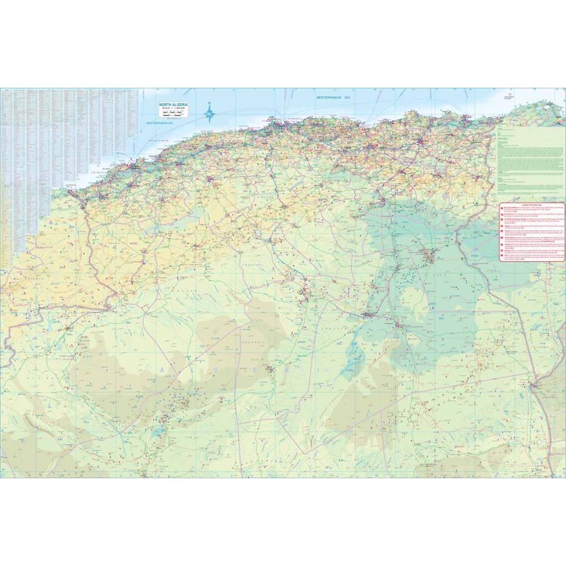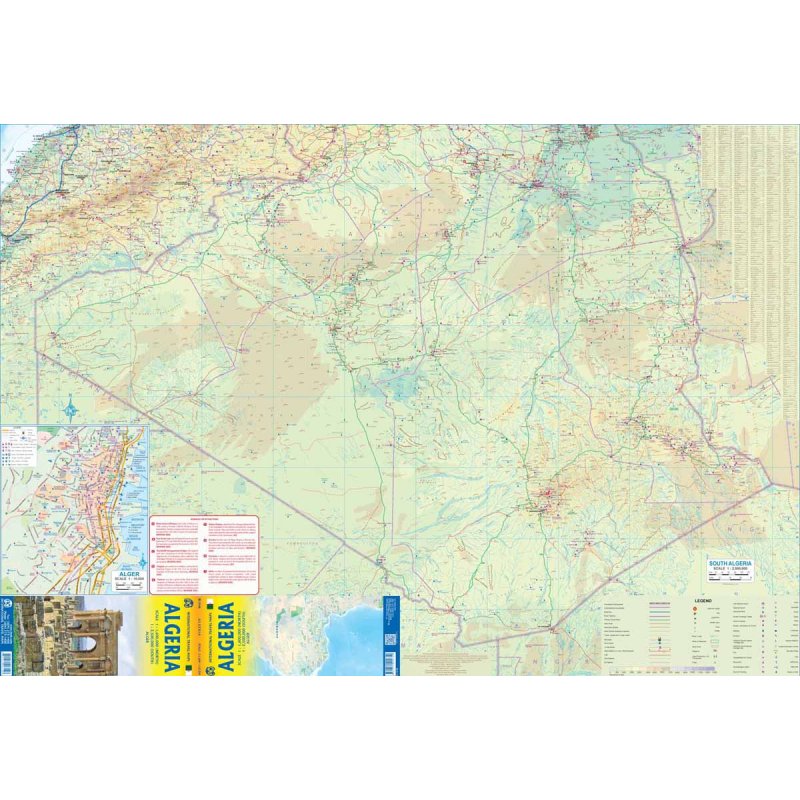 Description by ITMB: Algeria is one of those countries that are somewhat off the beaten track, touristically. However, it is a very interesting country, a former part of the Roman Empire in the first century AD, and the capital of Tilamsun Empire in the 13th to 15th centuries. As a result, the coastal portion has well-preserved remains from ancient times and the country seems to be opening up for increased tourism. We have added new motorways to our map and have changed certain place names (such as Alger for Algiers) to reflect current usage, so this map is a significant upgrade to anything available from other publishers. We have also added a Top Attractions list and an inset map of Alger.