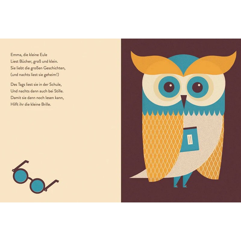 Emma, die kleine Eule und Olga, der Oktopus, Tiere im Meer, im Weltall, im Dschungel und im Fluss. Kylie, Edgar, Nemo und alle anderen Freunde vereint, Dreiundzwanzig Tiere - illustriert und gereimt.