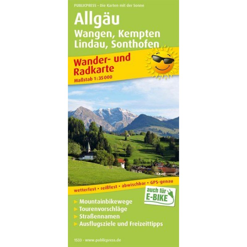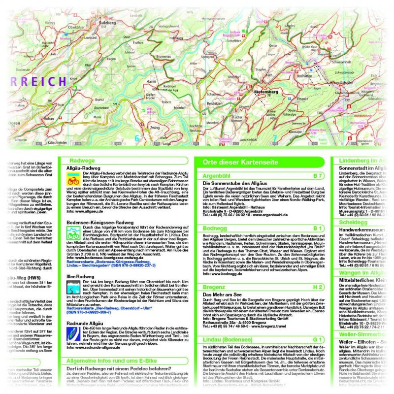 Das westliche Allgäu beeindruckt mit der imposanten Alpenkulisse im Süden, dem Bodensee im Osten und der flach hügeligen Landschaft im Norden. Wangen, das mittelalterliche Kleinod lockt mit seinem herrlichen Fachwerkhäusern, Lindenberg, die Bergstadt im Vierländereck, erhebt sich als Sonnenterrasse über dem Bodensee und Kempten begeistert mit mehr als 2.000 Jahren Geschichte. Ein schier grenzenloses Netz von Wander- und Radwegen für jeden Geschmack lässt garantiert keine Wünsche offen. Kartenformat: 99 x 80 cm, Faltformat 20 x 9 cm
