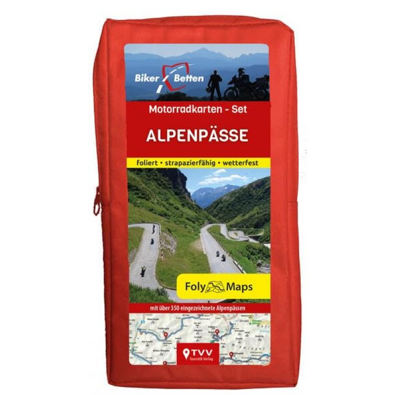 Das Motorradkarten-Set Alpenpässe, bestehend aus 7 laminierten Karten, die im übersichtlichen Tourenmaßstab 1:250.000 die Alpen-Regionen von Deutschland, Österreich, Italien, Schweiz, Slowenien und Frankreich abdecken. Mit über 350 eingezeichneten Alpenpässen. In einer praktischen Umtasche mit Reißverschluß.