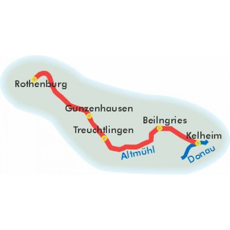 Wie die Altmühl zu ihrem Namen kam, ist bis heute im Dunkeln geblieben. Vor 2.500 Jahren besiedelten die Kelten Süddeutschland und gaben dem Fluss den erstmals 750 n. Chr. urkundlich erwähnten Namen »Alkmuna«. Einige deuten den Namen als »heiliger, stiller Fluss«, andere nennen ihn »Elchfluss« von alc = Elch und mona = Fluss, da bis ins frühe Mittelalter in der Gegend Elche heimisch waren. Vom Ursprung in der Frankenhöhe durchströmt die Altmühl ein weitgehend naturbelassenes, breites Wiesen- und Weideland. Kleine malerische Städte wie Leutershausen, Herrieden oder Ornbau mit den zum Teil gut erhaltenen mittelalterlichen Wehranlagen bestimmen das Landschaftsbild. Der künstlich geschaffene Altmühlsee verändert den nächsten Abschnitt des Flusslaufs entscheidend. Der See und die Stadt Gunzenhausen sind Zentrum des Fränkischen Seenlandes, einem großen Erholungsgebiet ersten Ranges.