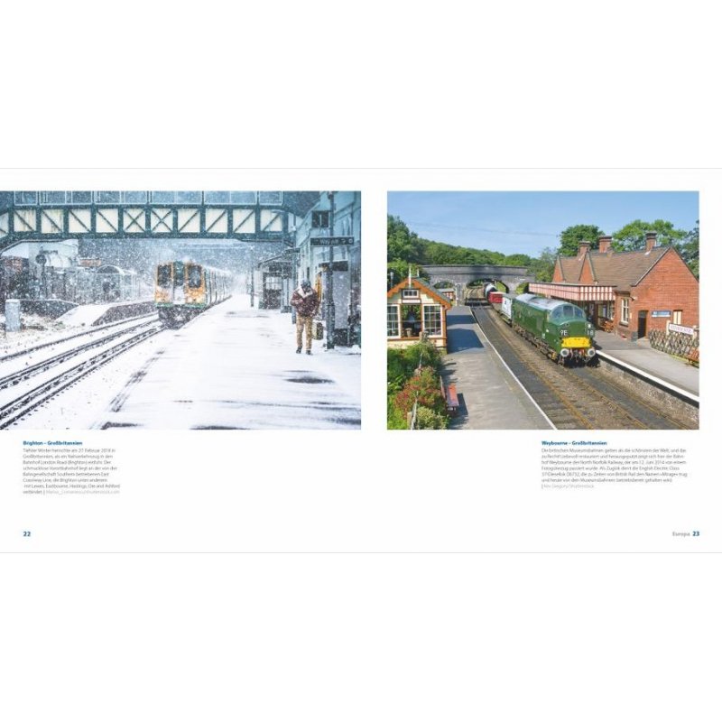 Seit 1826 im nordenglischen Darlington der erste Bahnhof der Welt eröffnet wurde, hat sich viel getan in der Welt der Eisenbahn. Entsprechend vielfältig sind unter anderem die Empfangsgebäude: Die Spannbreite reicht von den »Kathedralen der industriellen Revolution« (G. K.Chesterton) bis zu romantischen Nebenbahnstationen. Allen gemein ist, dass sie einen großen Reiz auf die Menschen ausüben: Sie signalisieren unter anderem die Aussicht auf Flucht vor dem Alltag und ferne Ziele.