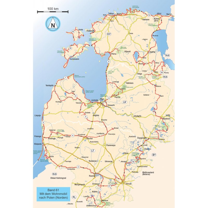 Unsere Rundfahrt durch die drei baltischen Länder ist in 17 Touren unterteilt. Zu jeder Tour zeigt eine Übersichtskarte die Fahrstrecke, die Positionen von Stellplätzen, Campingplätzen, Badestränden und Sehenswürdigkeiten und ist so die Basis für Ihre einfache Orientierung vor Ort. - NATUR ERLEBEN, WANDERN