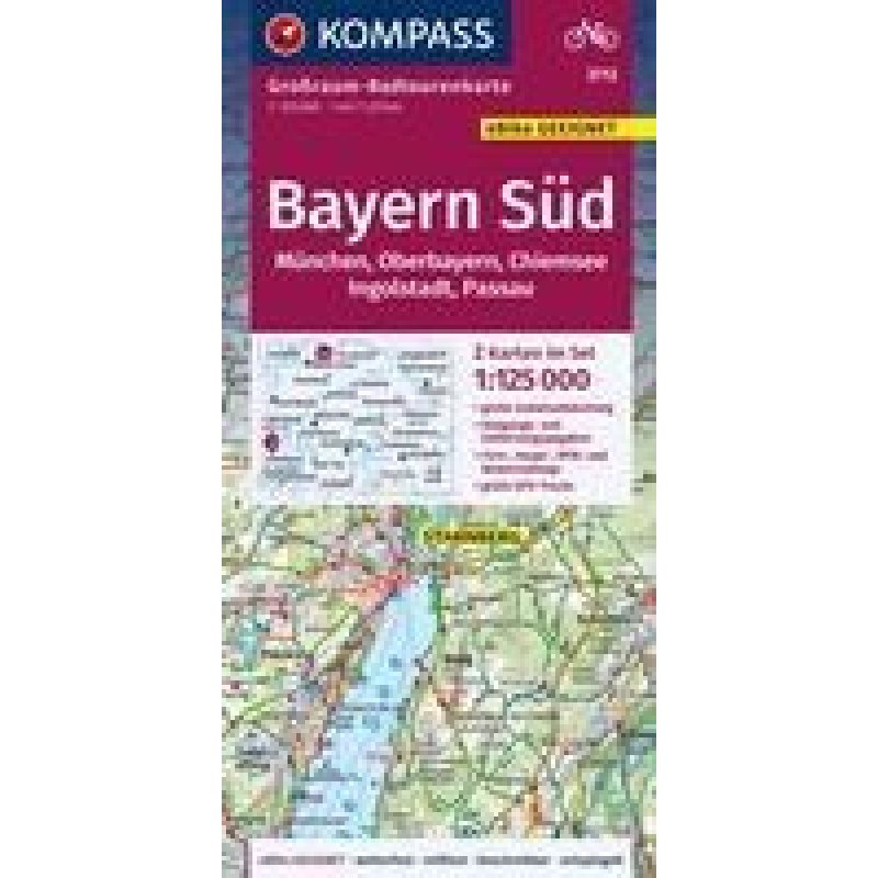 - KOMPASS Großraum-Radtourenkarte 3712 Bayern Süd, Oberbayern, Chiemsee, Ingolstadt, Passau, München 1:125.000
