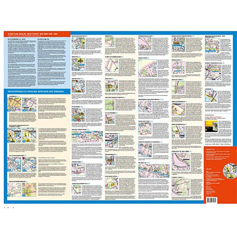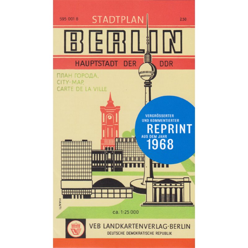 Vergrößerter Reprint eines Planes vom VEB Landkartenverlag aus dem Jahr 1968. Die kurzweilig und unterhaltsam kommentierte Plan-Rückseite lädt stadtgeschichtlich interessierte Berliner und Berlin-Besucher zu einem interessanten Ritt durch eine Zeit, wo die Zukunft noch strahlend schien.