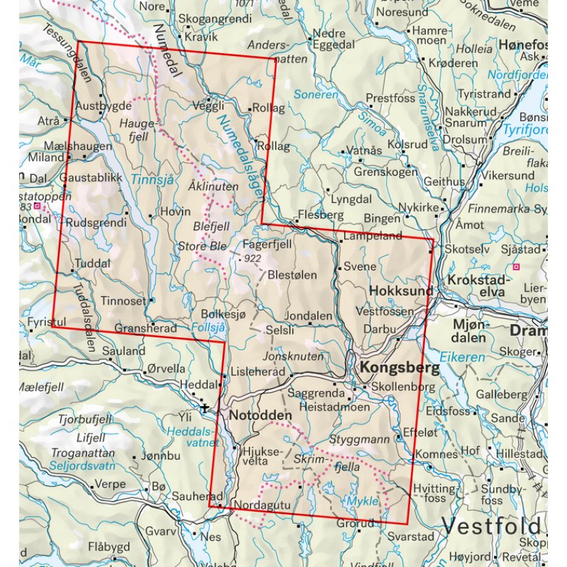 Kongsberg, Notodden, Svene, Lampeland, Jondalen, Veggli, Gransherad, Rollag, Austbygde, Sauherad, Skrimfjella