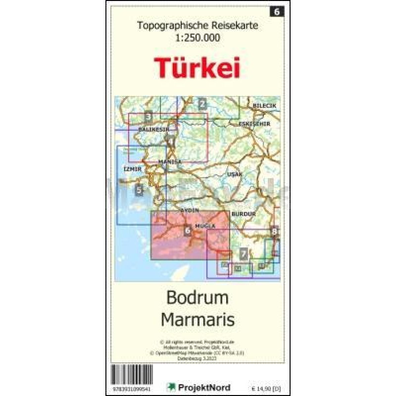 Bodrum - Marmaris - Topographische Reisekarte 1:250.000