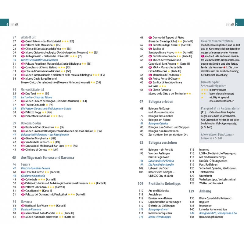 zahlreiche Fotos, detaillierter Stadtplan (Faltplan zum Herausnehmen) und praktische Übersichtskarten, ÖPNV-Linienplan, ausführliches Register, Sprachhilfe Italienisch