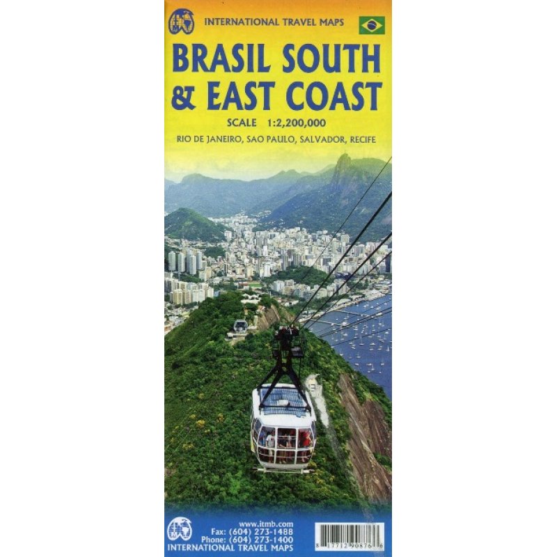 Description by ITMB: Brasil is such a large country that it needs two maps to cover it adequately. This map covers the country from the southernmost point to Sao Luis on the northern coast and inland as far as Brasilia. This is where 80% of the country lives and where 95% of the tourists visit. The interior and Amazon region will be covered separately. This map includes separate inset maps of both Rio and Sao Paulo and shows the extensive motorway network of Brasil to good advantage. The top attractions of the region are noted, such as Iguazu Falls, Sugar Loaf, Brasilia, and Salvador.
