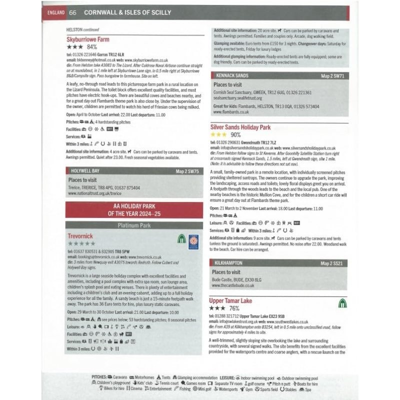 - Features all the award-winning AA campsites of the year for 2025