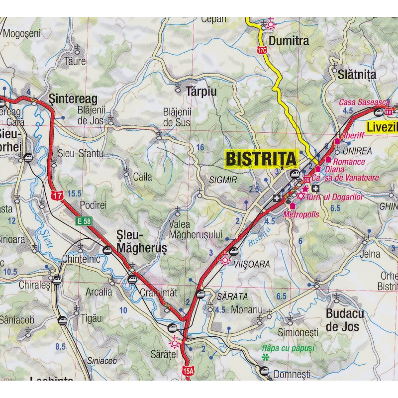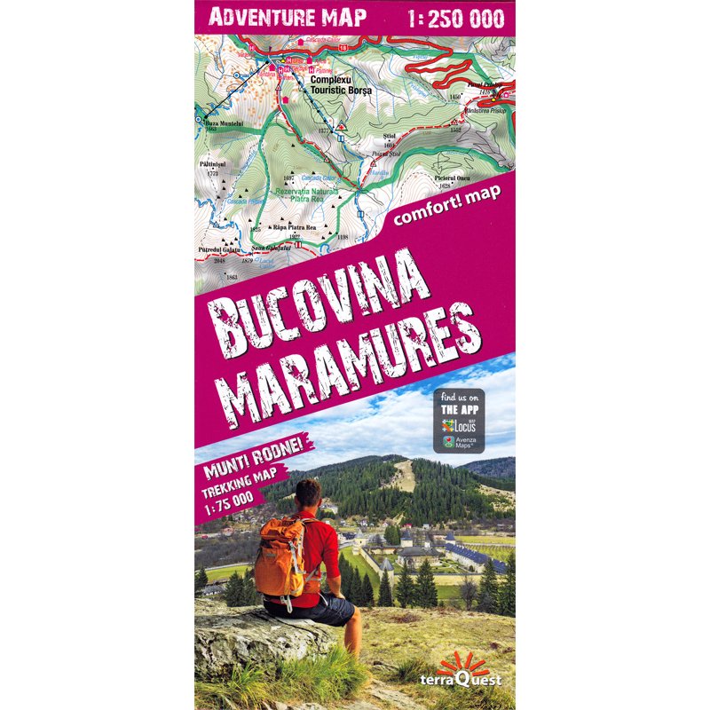 Eine exzellente, bequem zu handhabende touristische Karte des nördlichen Teils Rumäniens - der Regionen Maramures und Bucovina. Die Karte ist zusätzlich mit dem Rodna-Gebirge bereichert, das in einem genauen Maßstab dargestellt ist. Die Publikation zeichnet sich durch ihren präzisen topografischen und touristischen Inhalt aus. Sie wurde speziell für aktive Menschen erstellt, die sich auf den Weg nach Nordrumänien in die Region machen, die für ihre „gemalten Klöster“ berühmt ist.