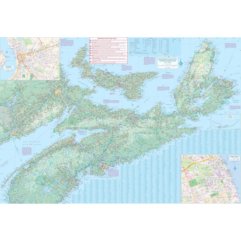 Description by ITMB: The Atlantic coast of Canada is blessed with some of the earliest European settlement areas in North America. There are three Canadian provinces that have been traditionally called "maritime" - New Brunswick, Nova Scotia, and Prince Edward Island. Newfoundland only became part of Canada in 1949, a century after the term Maritimes had become common usage, so is part of Atlantic Canada, but not the Maritime provinces. This double-sided regional map is great for those visiting all three provinces (ITMB also publishes separate maps of each province). All the roads and towns are shown, as well as parks, camping areas, touristic attractions, and historic sites. The area is rich in history. Last summer, Lan and I took our two grandchildren on a month-long drive across Canada and visited Louisbourg, on Cape Breton, the French fortress that dominated French control of Quebec for many years. We also toured Green Gables, the actual farm made famous by L. M. Montgomery and her fictional Anne Shirley. Roosevelt's beloved estate is on Campobello Island, in New Brunswick. This is one of the most popular regions of North America to visit.