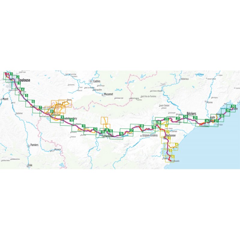 Wegequalität & Verkehr: Der Radweg am Canal du Midi ist noch nicht durchgängig ausgebaut. Je nach Kommune befindet sich die Strecke in gutem oder weniger gutem Zustand. Gut ausgebaute Radwege gibt es von Toulouse bis Port Lauragais, von Carcassonne bis Marseillette (geschottert), von Béziers bis Portiragnes Plage und von Marseillan Plage nach Sète. Der Abschnitt am Canal de la Robine von Narbonne bis Port-la-Nouvelle (geschottert) bzw. Saint-Pierre-la-Mer ist ebenfalls gut zu befahren. Auf den restlichen Abschnitten führt der Radweg größtenteils auf den verkehrsfreien Wegen entlang des Kanals, die Treidelpfade können hier stellenweise sehr holprig und schmal sein. Für die schlecht befahrbaren Abschnitte werden in diesem Buch fast immer Alternativstrecken auf ruhigen Nebenstraßen vorgeschlagen. Nur selten muss dabei auch auf stärker befahrene Straßen ausgewichen werden.