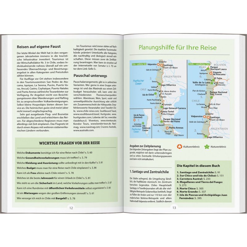 So vielfältig wie Chiles Landschaften sind auch die Wege, auf denen man sie bereisen kann. Erkunden Sie hoch zu Ross die Route der Bankräuber durch die Anden, unternehmen Sie eine Bootstour zu den Marmorkathedralen am Lago General Carrera oder machen Sie sich mit dem Mietwagen auf zu den Holzkirchen der Isla de Chiloé. Mit den ausführlich beschriebenen Aktivtouren inklusive detaillierter Routenkarten erleben Sie unvergessliche Augenblicke in atemberaubender Natur. Zahlreiche kommentierte Adressen für Unterkünfte, Restaurants und Bars laden außerdem zum Entdecken der Städte ein. Lassen Sie sich inspirieren und genießen Sie Ihren Urlaub in Chile so, wie es zu Ihnen passt!