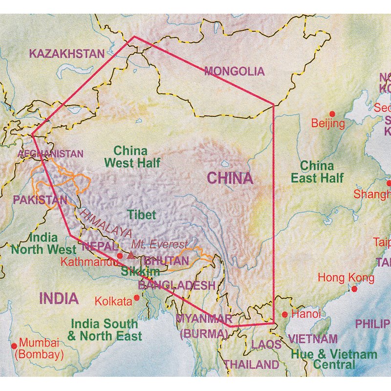 Description by ITMB: China is a fascinating country. Most visitors limit themselves to the eastern portion - Beijing, Shanghai, Xian etc. The vast western half of this great country contains such exotic cities as Kinming in the south, Lhasa in Tibet, and the fabled Silk Road cities of Kashi, Aksu, and Urumpl, as well as the enormous Taklimakan Desert and the high, isolated, Tibetan Plateau. Never has this part of China been better mapped, with all new highway projects prominently noted as well as the new train line into Lhasa; one of the great engineering projects of our times. Printed on paper, double sided.