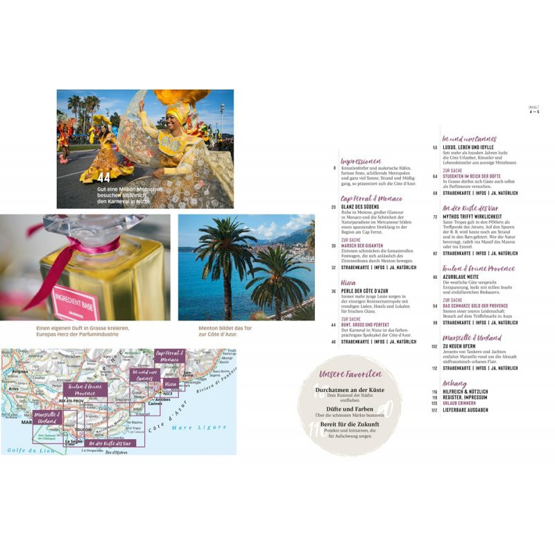 DuMont Bildatlas Côte d'Azur - die Bilder des Fotografen Björn Göttlicher zeigen faszinierende Panoramen und ungewöhnliche Nahaufnahmen. Sechs Kapitel, gegliedert nach regionalen Gesichtspunkten, geben einen Überblick über die "blaue Küste". Zu jedem Kapitel gehören Hintergrundreportagen und Specials, die aktuelle und interessante Themen aufgreifen. Eines der DUMONT Themen folgt dem Duft der Parfümeure nach Grasse. Ein anderes gräbt eine teure Leidenschaft aus und besucht den Trüffelmarkt in Aups, und ein weiteres Thema verfolgt wie sich Marseilles ältester Stadtteil sich schick macht. Den Abschluss eines jeden Kapitels bilden Infoseiten mit allen wichtigen Sehenswürdigkeiten, die auf der nebenstehenden detaillierten Reisekarte leicht zu lokalisieren sind. Viele persönliche Tipps der Autoren sowie Empfehlungen zu Hotels und Restaurants ergänzen das Infoangebot. Abgerundet wird der Bildatlas durch das Servicekapitel, das praktische und allgemeine Informationen für die Vorbereitung der Reise beinhaltet sowie Daten und Fakten zum Reiseland liefert.