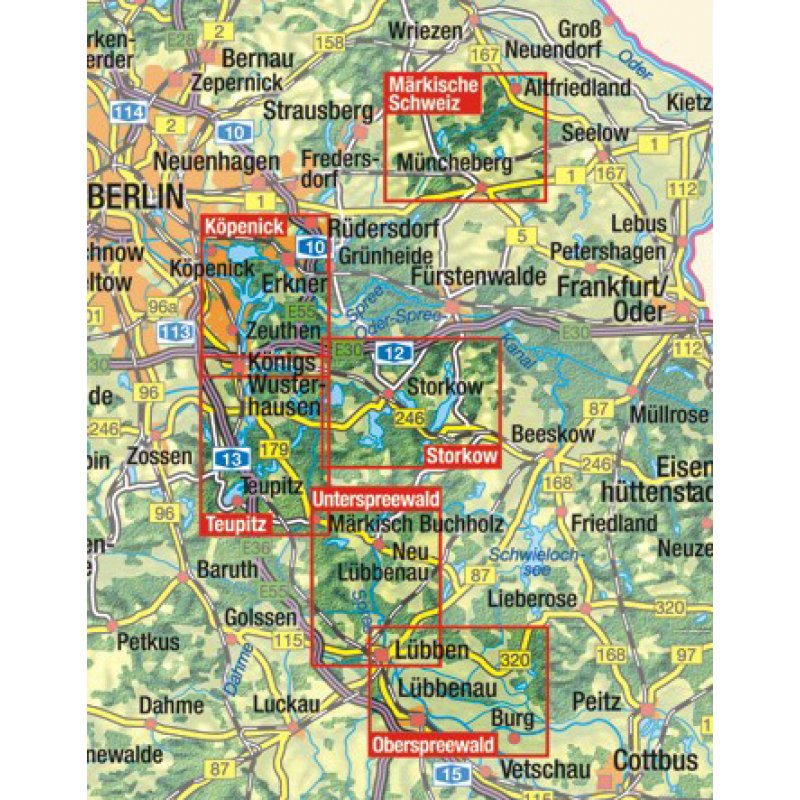Die Karten im Maßstab von 1:35.000 wurden nach geographischen, landschaftlichen und touristischen Aspekten erarbeitet. Neben der exakten Wegezeichnung, unterschieden nach Wanderwegen und Radwanderrouten, die drei verschiedene Kategorien der Oberflächenqualität kennzeichnen, sind Besonderheiten der Landschaft sowie Höhenangaben eingetragen. Zusätzlich sind wichtige Informationen für Wassersportler und Binnenschiffer enthalten. Neben den Ortsbeschreibungen und Erwähnenswerten zur Geschichte findet der Kartennutzer historische und landschaftlich reizvolle Punkte, markante Bäume u. ä. Bekanntes und ''Geheimtipps''. Durch das handliche Format (48 x 68 cm bzw. 48 x 60 cm) und das spezielle Landkartenpapier finden die Karten bei den Nutzern großen Anklang.