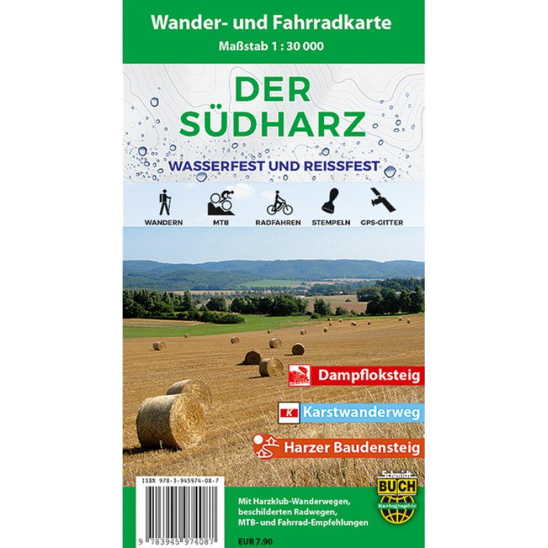 Das wasser- und reißfeste Premium-Material der Wander- und Fahrradkarte „Der Südharz“ trotzt widrigsten Witterungsbedingungen und ermöglicht eine komfortable Benutzung auch bei Sturm, Hagel, Schnee und Regen. Durch den Druck im frequenzmodulierten Feinraster bleibt das sehr inhaltsreiche Kartenbild übersichtlich und die Vorzüge des detaillierten Maßstabs 1:30.000 können voll genutzt werden.