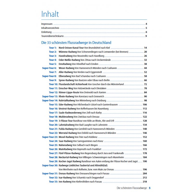 Jeder Flussradweg wird auf sechs bis acht reich bebilderten Seiten beschrieben: Streckenbeschreibung, Highlights, alle Infos, Übersichtskarte und Tipps zu Sehens- und Erlebenswertem