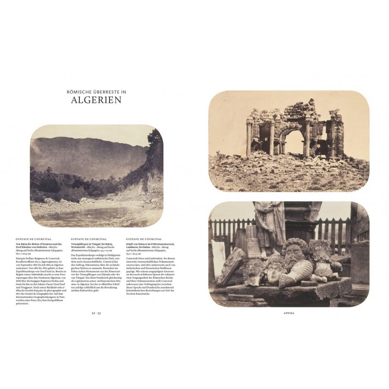 Seit Menschen auf Reisen gehen, haben sie das Bedürfnis, ihre Erlebnisse festzuhalten und miteinander zu teilen. Von der Erfindung der Fotografie Mitte des 19. Jahrhunderts bis zu den ersten tragbaren Apparaten war es nur ein kurzer Schritt und schon bald gehörte die Kamera – wenn auch nicht in dem heute üblichen handlichen Format - zur Grundausstattung jedes anständigen Abenteurers und Globetrotters. Viele dieser frühen Aufnahmen aus bis dato unbekannten Weltgegenden wurden zu Ikonen ihrer Epoche und lassen uns bis heute an längst vergangenen Zeiten und Kulturen teilhaben. Die exquisite Auswahl aus dem Bestand der französischen Nationalbibliothek präsentiert eine Kollektion von 230 teils farbigen, meist Duotone-Bildern aus der Zeit von 1850 bis 1914, die einen faszinierenden Blick auf die Welt mit den Augen des 19. und frühen 20. Jahrhunderts ermöglichen. Die Reise führt von den Pyramiden im Norden Afrikas durch die Sahara bis zum Kap, von Nord nach Süd durch beide Teile Amerikas, durchquert Europa von West nach Ost bis ins Osmanische Reich, streift die Mongolei und Persien und schlägt einen Bogen von Indien über Japan und die Gewürzinseln bis nach Australien.