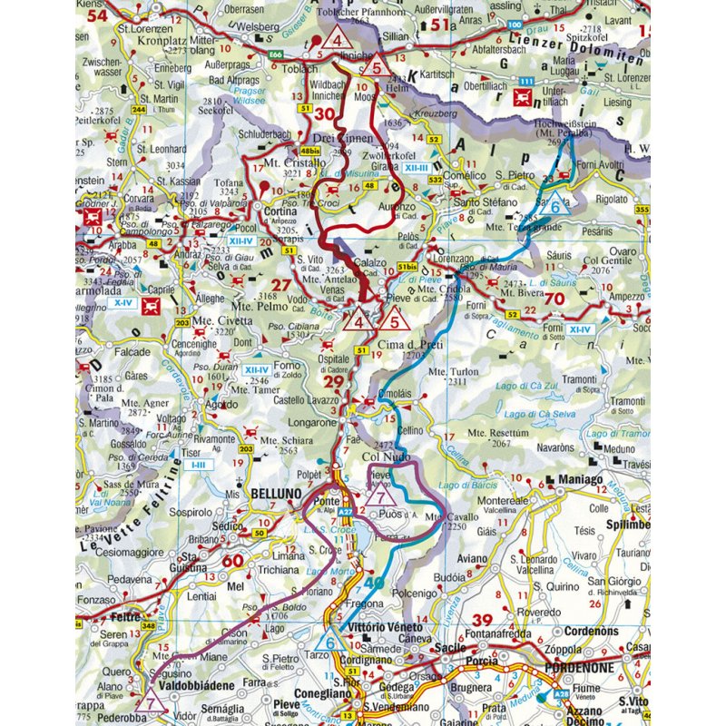 Der Dolomiten-Höhenweg Nr. 4 bringt den Wanderer von Innichen nach Pieve di Cadore im Piavetal und durchquert dabei die Sextener Dolomiten, die Cadini-, Sorapiss-, Marmarole- und Antelaogruppe. Der Dolomiten-Höhenweg Nr. 5 führt von Sexten nach Pieve di Cadore. Dolomiten-Höhenweg Nr. 6 verläuft durch die Karnischen Alpen von Sappada nach Vittorio Veneto. Der südlichste der Wege, der Dolomiten-Höhenweg Nr. 7, verläuft von Pieve d’Alpago durch die Karnischen Alpen und die Venetianischen Voralpen nach Segusino.
