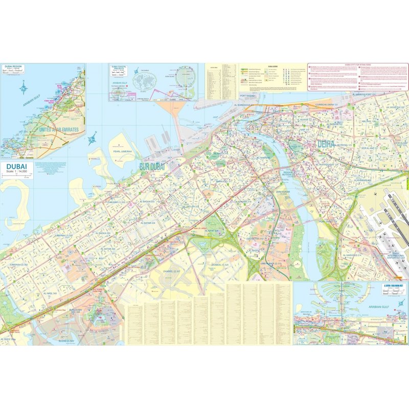 Description by ITMB: The Sultanate of Dubai is evolving into a popular tourist destination for week-long stays. The city itself is fairly new, with lots of exciting architecture, including the man-made resort islands of Deira and Palm Jumeirah. The Burj Khalifa is the tallest building in the world, and the Dubai Mall is the world’s largest, with more than 80 million visitors annually. The gold souk is a fascinating traditional market. Truly, the city is making extraordinary efforts to attract visitors from around the world. Equally interesting are the surrounding countries of the United Arab Emirates and Oman, all of which are tourist-friendly. International airports are located close to Abu Dhabi, Dubai, and Muscat. Excellent modern roads connect the entire region and border crossings are relatively routine. This map shows an attractive and interesting part of the world, including such marvels as the Hajar Mountains and Al Ain, one of the world’s oldest inhabited cities.