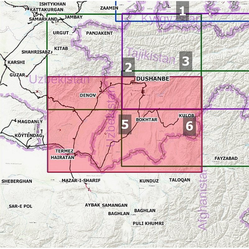 Straßenkarte Tadschikistan - Usbekistan - Afghanistan