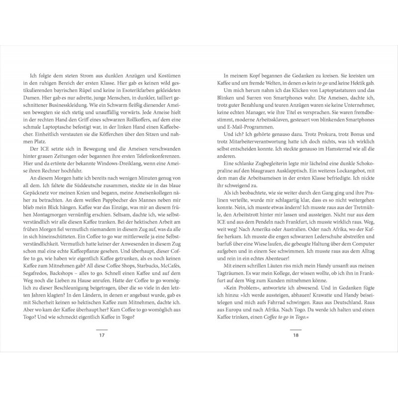 Markus Weber, geboren 1981 in Freiburg, hat sieben Jahre für eine der weltweit größten Unternehmensberatungen gearbeitet. Nach zu vielen Nächten in fremden Bürotürmen und Hotelbetten nahm der damals 31-jährige Manager eine Auszeit und fuhr mit dem Fahrrad nach Togo, um einen Kaffee zu trinken.