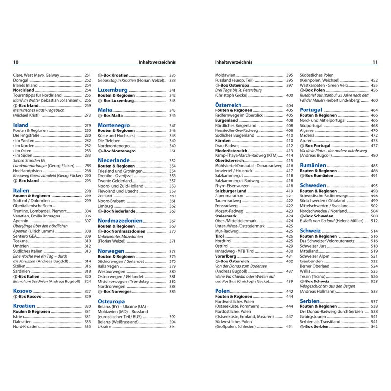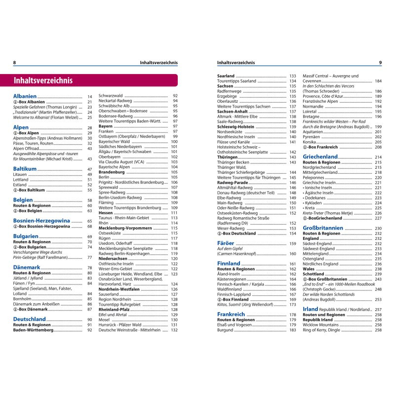 Dieser umfassende Reiseführer „Europa per Rad“ ist der praktische Begleiter für alle, die Europa auf zwei Rädern entdecken möchten. Das Buch bietet neben Tipps und Wissenswertem einen Überblick über die schönsten Radreise-Regionen des Kontinents – von den Fjorden am Nordkap bis zum Südzipfel Kretas.