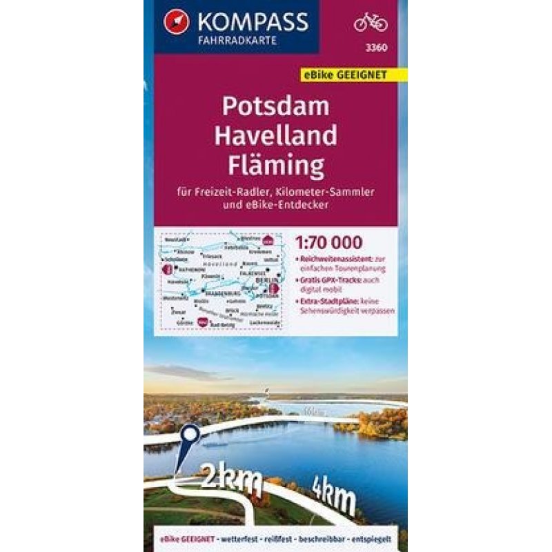 KOMPASS Fahrradkarte Potsdam, Havelland, Fläming 1:70 000 Blatt 3360 reiß- und wetterfest mit Extra Stadtplänen