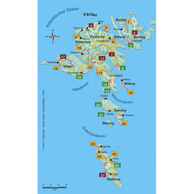 Die schroffen, mitten im Nordatlantik liegenden Färöer bestehen aus 18 Inseln und gelten als Geheimtipp für Naturliebhaber und Wanderfreunde. Auf uralten Wegen wandern Sie durch das Reich der Vögel und Schafe und genießen atemberaubende Ausblicke über markante Berggipfel, steile Grashänge und pittoreske Dörfer. Dieses Buch beschreibt 27 abwechslungsreiche Routen, von einfachen Kurztouren bis zu anspruchsvollen Bergbesteigungen. Karten, Höhenprofile und GPS-Tracks erleichtern die Orientierung vor Ort. Allgemeine Infos zu Themen wie Anreise und Reisezeit, Hinweise zu Wegbeschaffenheit und Markierungen sowie Tipps für Varianten machen den Wanderführer zu einem unentbehrlichen Wegbegleiter.