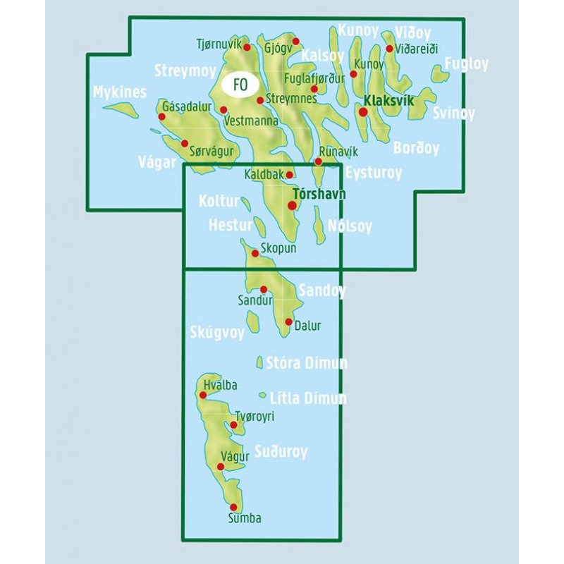 Die Straßenkarte Färöer - Føroyar im Maßstab 1:100.000 enthält zahlreiche nützliche Informationen für eine Reise auf die nördliche Inselgruppe. Das Straßennetz ist natürlich sehr detailliert abgebildet und viele besonders sehenswerte Ausflugsziele sind in der Karte eingezeichnet.