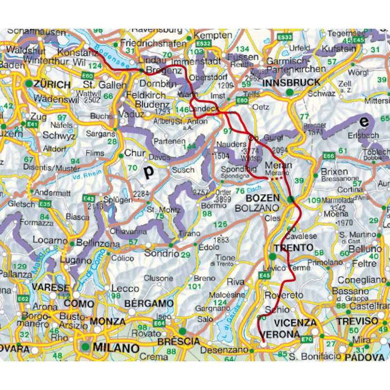 31 Etappen von Konstanz über Oberstdorf und Meran/Bozen nach Verona. Mit GPS-Tracks