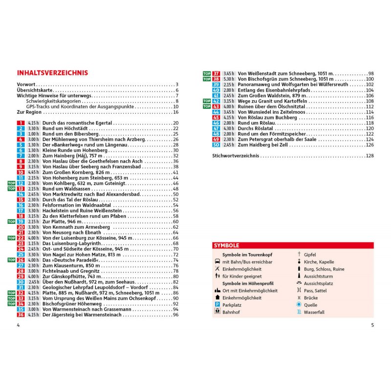96 Farbabbildungen, 50 Wanderkärtchen im Maßstab 1:25.000, 1:50.000 und 1:75.000, 50 Höhenprofile, eine Übersichtskarte, GPS-Tracks zum Download
