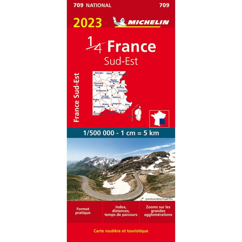 Die neue praktische Michelin Straßenkarte Südwestfrankreich im Maßstab 1:500.000. Die neue Straßen- und Tourismuskarte von Michelin mit dem Ausschnitt Frankreich - der Südosten (709). Die ganze Karte wird auf der Vorderseite der Karte dargestellt. Zusätzlich gibt es ein Ortsverzeichnis, Entfernungstabellen und Umgebungspläne. Die Anschlusskarten Nordostfrankreich (707), Nordwestfrankreich (706) und Südwestfrankreich (708) sind ebenfalls erhältlich. Die Michelin Straßenkarten werden jährlich aktualisiert.
