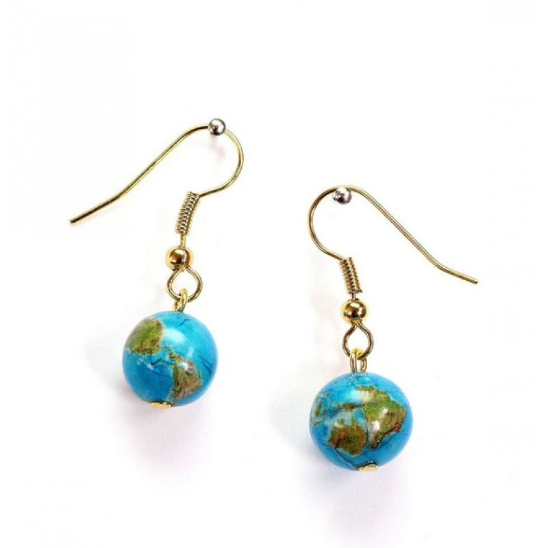 Die hübschen Weltkugeln haben einen Durchmesser von 1 oder 1,5 oder 2 cm, die Ohrhaken sind aus nickelfreiem platiniertem oder vergoldeten Metall.
