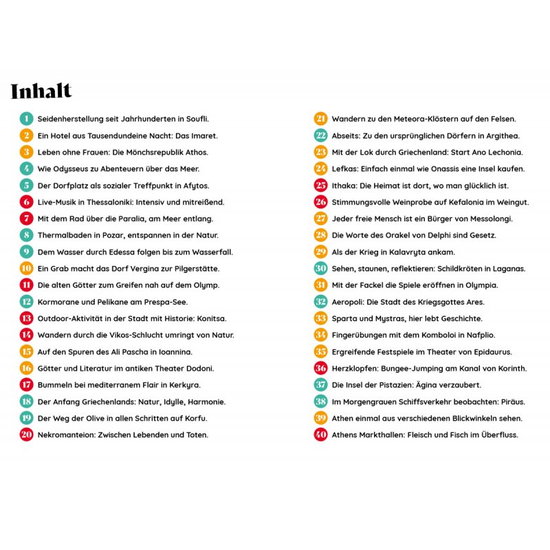 Von bemerkenswerten Thermalbädern und kulturträchtigen Klöstern, durch ursprüngliche Dörfer und auf den Spuren von Heldensagen, wie den Abenteuern des Odysseus, geleitet Autor Klaus Bötig zu besonderen Orten seiner Herzensdestination. In seinem Inspirationsführer für Griechenland stellt er handverlesene Lieblingsplätze vor, die das Innerste berühren und für immer im Gedächtnis bleiben.