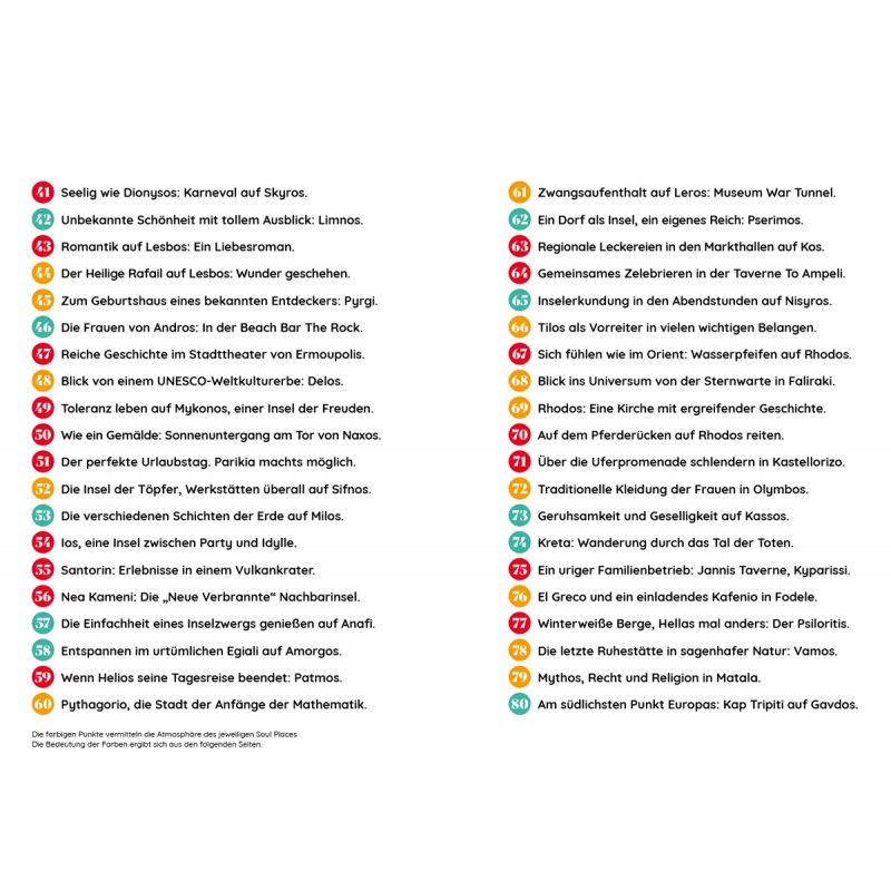 Olivenbaumhänge im Süden Korfus, das Zeus-Heiligtum in Dodoni oder die Wasserfälle des kleinen Städtchens Edessa: Diese Orte sind Soul Places, also Orte, die eine besondere Bedeutung in sich tragen, die etwas von der Geschichte Griechenlands und seiner Bewohner erzählen und Reisenden die Seele des Landes offenbaren. Wer auf der Suche nach inspirierenden Geheimtipps ist, dem öffnet sich mit dem Reiseführer Soul Places Griechenland eine Welt voller versteckter Plätze, die entdeckt werden wollen.