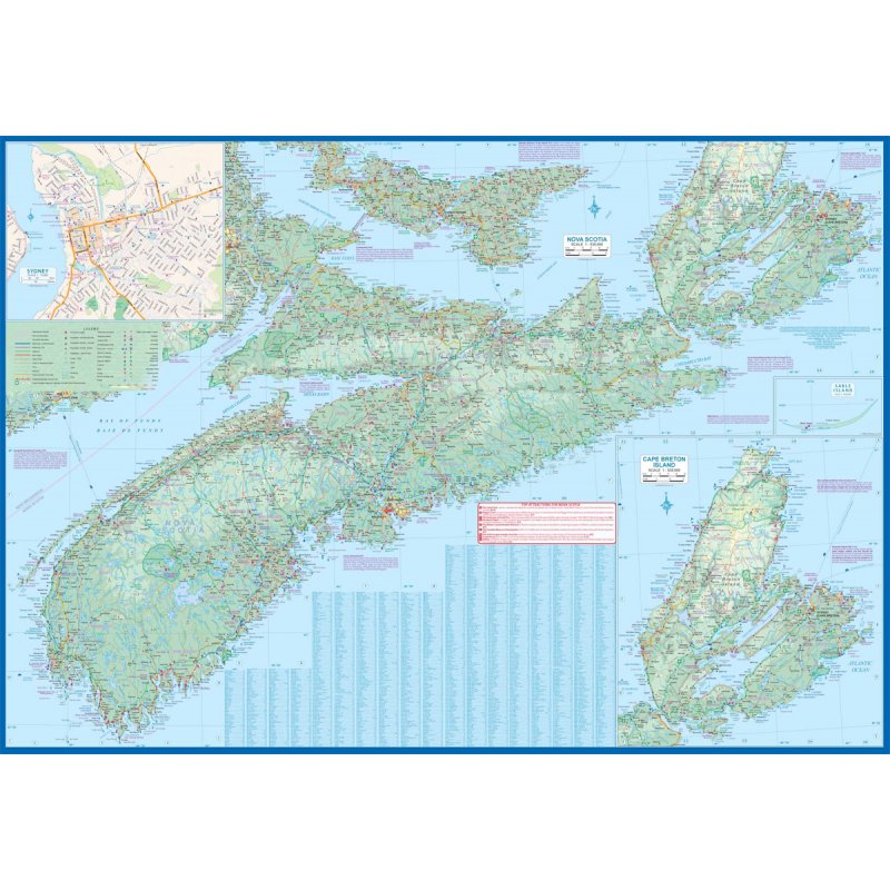 Description by ITMB: Halifax was founded by the British navy in 1745 as a base to patrol the North Atlantic and to place pressure on the nearby French possessions of Acadia and Quebec. It has an excellent harbour, and is still the main base for the Canadian naval fleet. The city is also the eastern terminus of the Trans-Canada rail network and a major harbour for shipping goods to Europe. For modern travellers, it is also a major port call for cruise ships and its airport is convenient for flights from Europe. The urban area is actually two separate cities, with Halifax on the western side of the harbour and Dartmouth on the eastern side. Both are shown in excellent detail on this map. The downtown area of Halifax is the most historic part of the city, with the citadel dominating the landscape (well worth a visit!). The second side is a good map of Nova Scotia and most of Prince Edward Island. It isn’t as detailed as our double-sided map of the province, but it is quite adequate for those spending a few days seeing the highlights of one of Canada’s most popular travel destinations. A large inset of lovely Cape Breton Island is included, and another of Sydney, from where ferries to Newfoundland depart.
