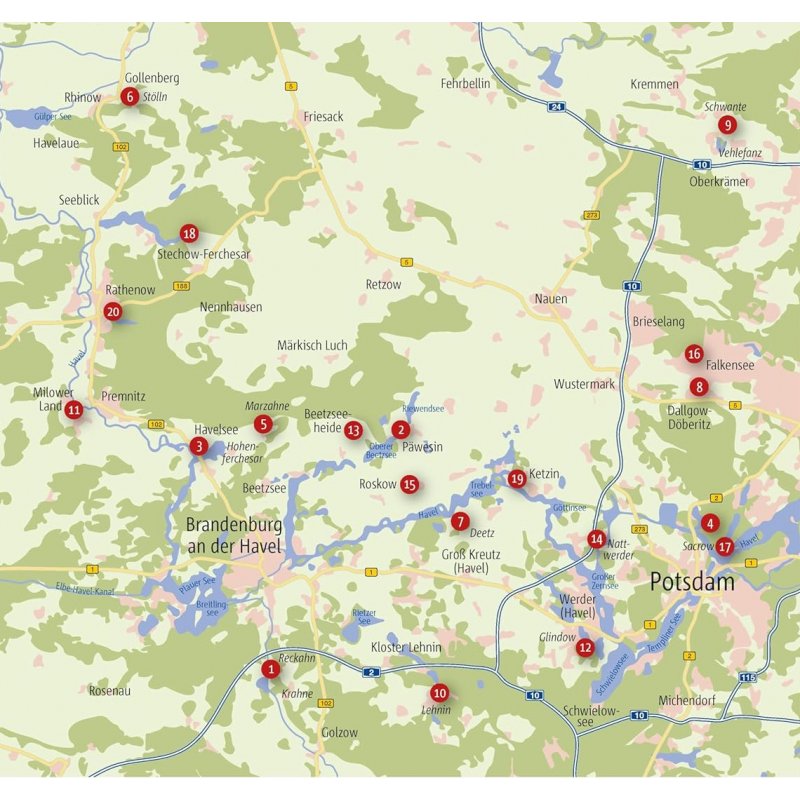 Wie ein blau-grünes Mosaik liegen im Havelland verschiedenste Landschaften nah beieinander: malerische Niederungen und sandige Höhen, verträumte Flussauen und glitzernde Seen. Auf stillen Wegen streift man durch die Döberitzer Heide, erklimmt die Glindower Alpen und bestaunt Kirchenkunst am Sacrower See. Am weiten Himmel ziehen Vögel vorüber und zwischen Feldern und Wäldern spürt man den ruhigen Herzschlag der alten Dörfer. Im Havelland fügt sich alles wunderbar zusammen.