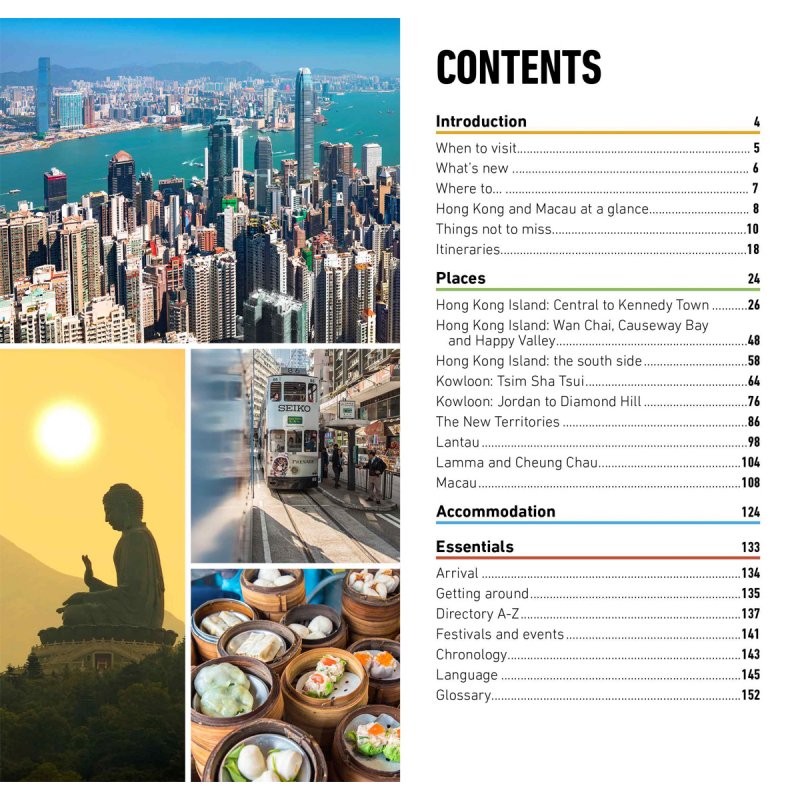 This Hong Kong & Macau guidebook covers: Hong Kong Island: Central to Kennedy Town, Hong Kong Island: Wan Chai, Causeway Bay and Happy Valley, Hong Kong Island: the south side, Kowloon: Tsim Sha Tsui, Kowloon: Jordan to Diamond Hill, The New Territories, Lantau, Lamma and Cheung Chau, Macau.
