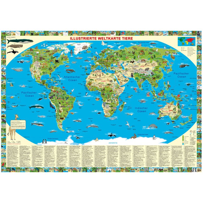 Illustrierte Weltkarte Tiere (für Kinder)