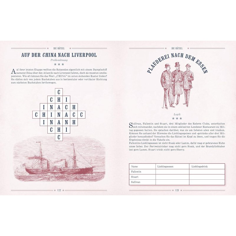 Diese von Jules Vernes berühmtem Roman In 80 Tagen um die Welt und dem Viktorianischen Zeitalter inspirierte Rätselsammlung entführt Sie auf eine aufregende Reise rund um die Welt. Tauchen Sie ein in die Welt des Londoner Gentlemans Phileas Fogg und seines treuen Begleiters Passepartout und lösen Sie über 200 knifflige Logikrätsel und Denksportaufgaben.